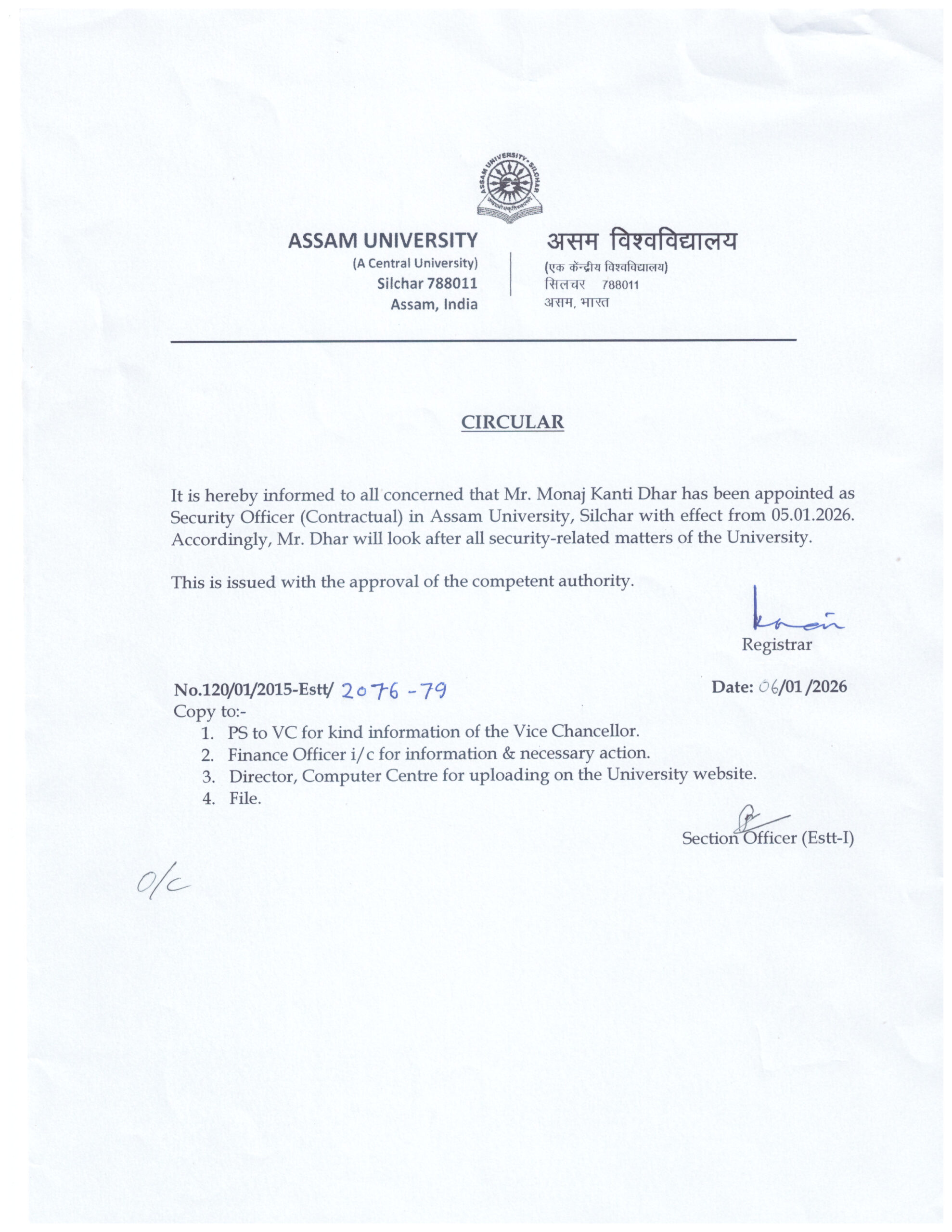- Advertisement for the post of Principal, Karimganj College, Sribhumi